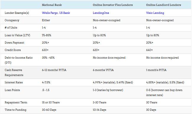 Rental property loans are inherently different from short-term fix-and flip loans, so we broke them down into two separate charts for easy loan comparisons.