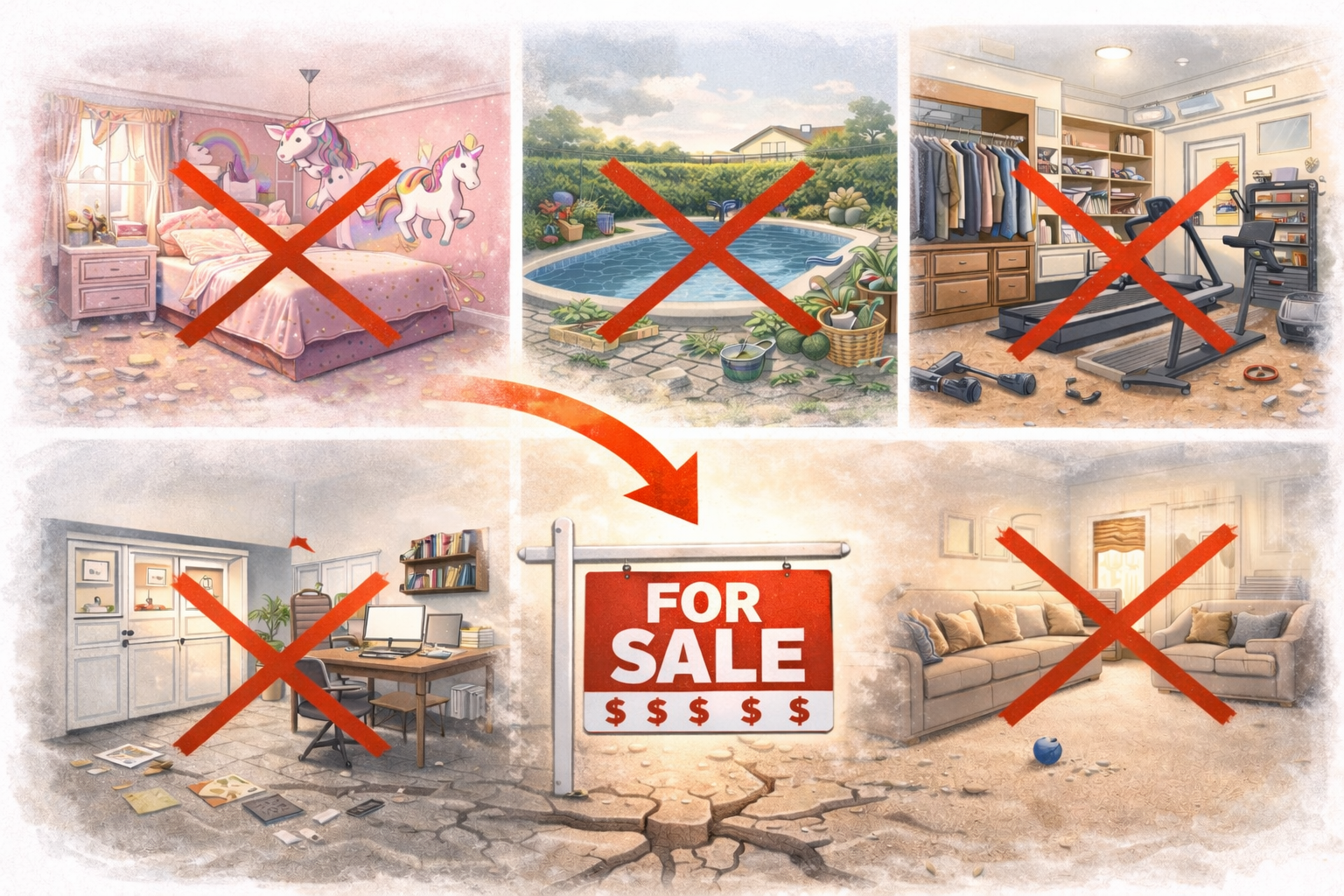• Over-personalization, high-maintenance features, and garage conversions are common culprits. Buyers see the cost of undoing your decisions, not the value you added.