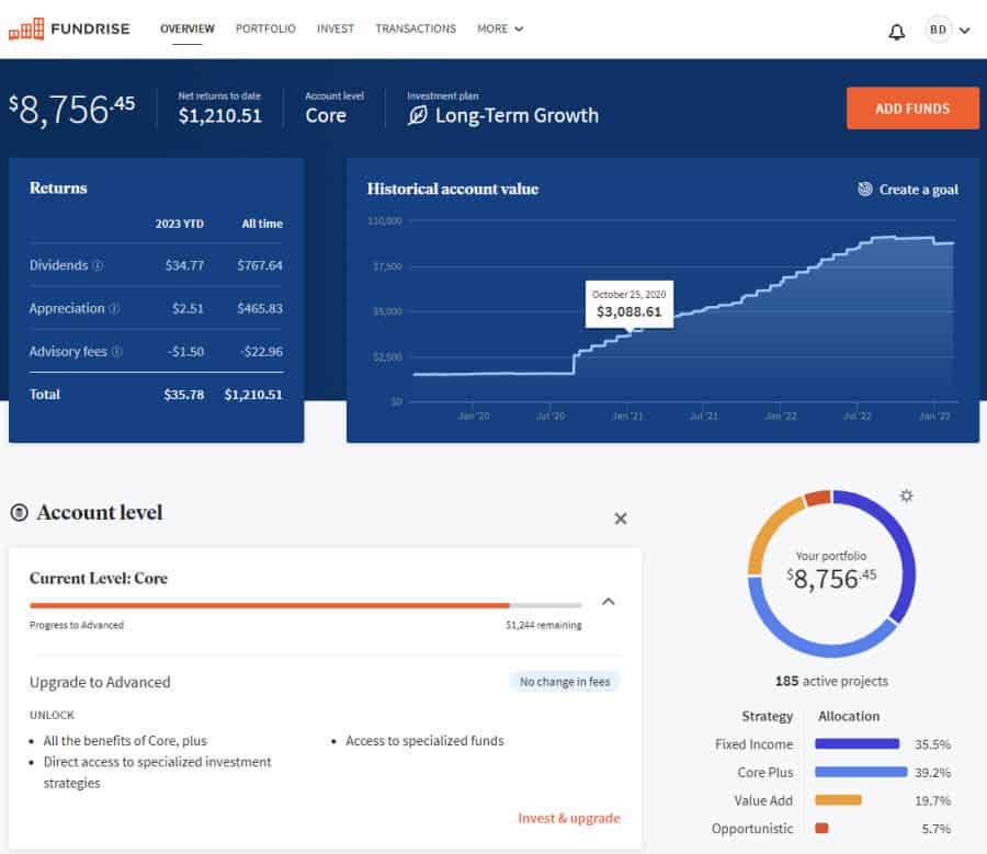 Fundrise also lets you buy fractional ownership in real estate — if you’re an accredited investor. The rest of us can invest in their pooled real estate funds and eREITs, but we don’t get fine-tuned control over where each dollar goes. Still, Fundrise lets you start investing with just $10, and gives you instant exposure to dozens of properties. That makes for simple diversification across many real estate markets (read our full Fundrise review for more).