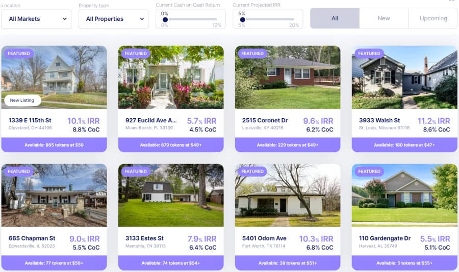 Type: Fractional ownership in single-family rentals, short-term rentals, medium-term rentals, and multifamily properties.