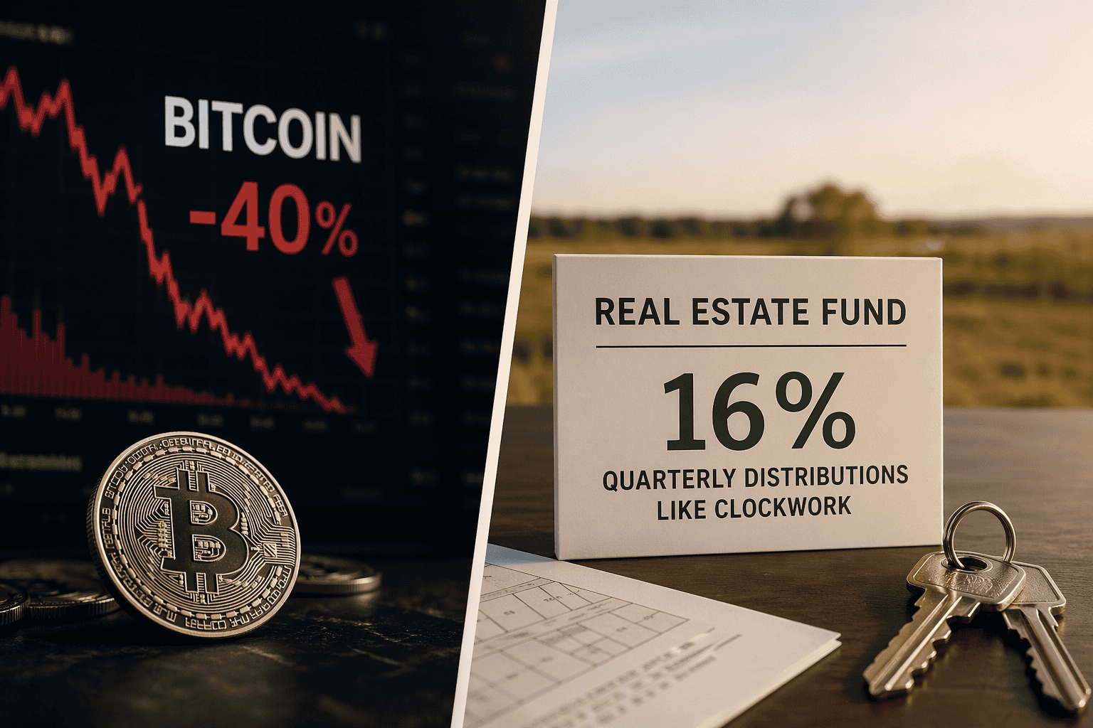 Cash-flowing real estate investments solve this. The land fund doesn’t care what Bitcoin does. It doesn’t care about Fed policy or geopolitical tensions. The operators buy undervalued land, fix the problems, sell to buyers who want it. Rinse and repeat.